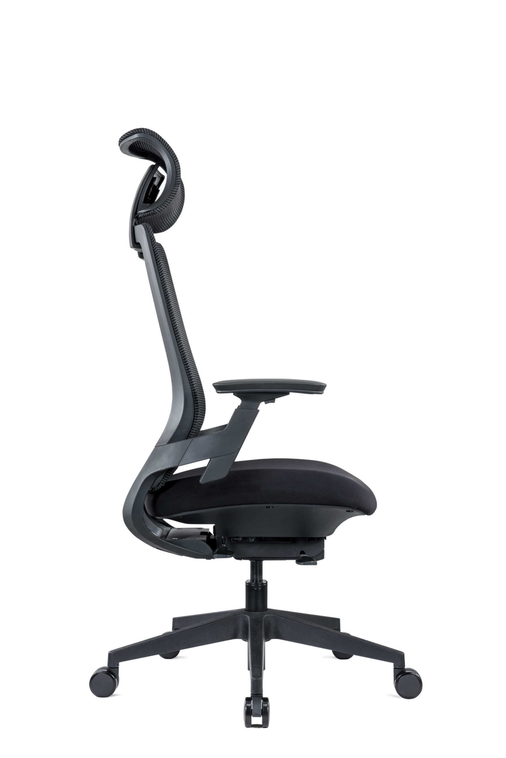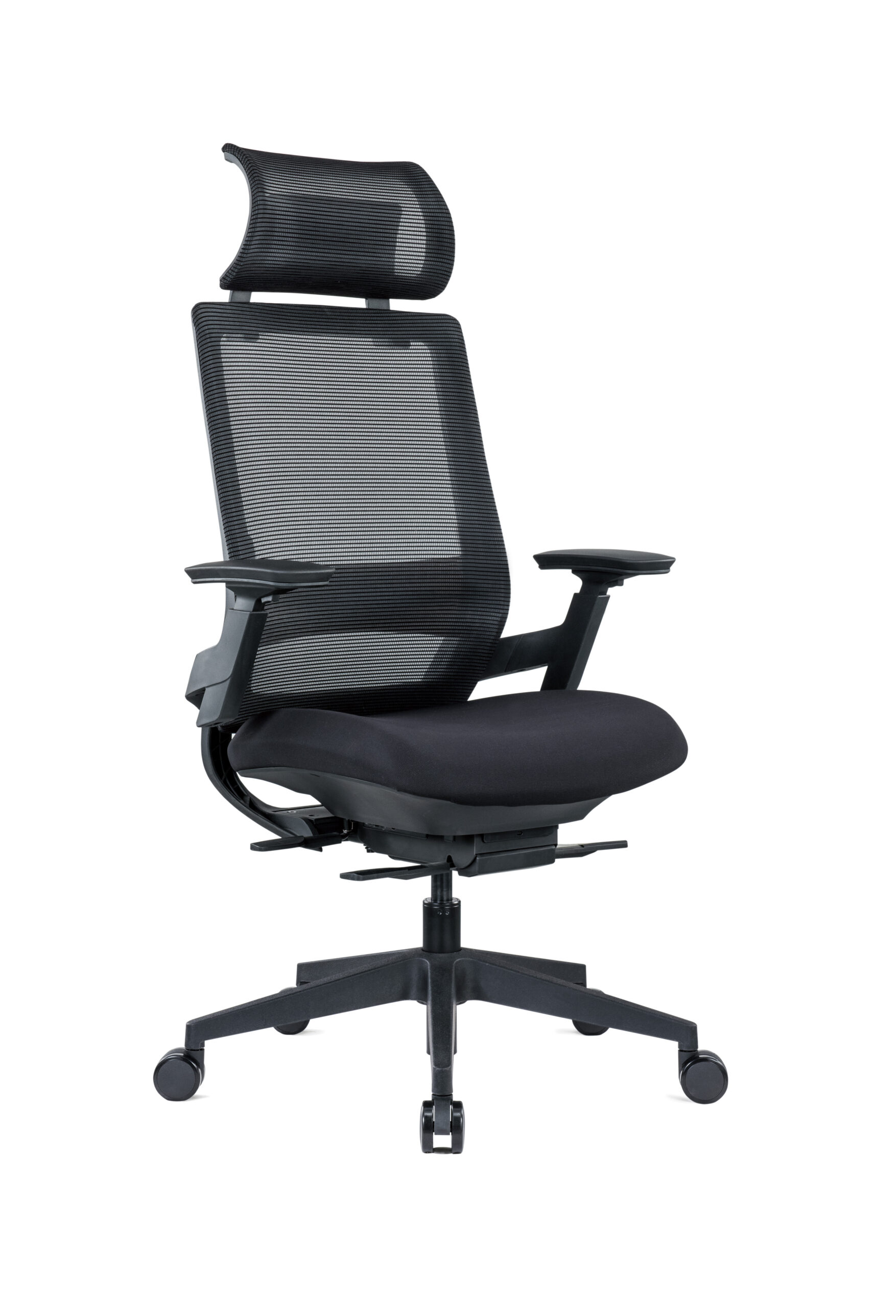 The Ergonomic Mesh Task Chair in Black with Headrest delivers premium comfort and adjustability for demanding work environments. Designed with an extra-large executive headrest, adjustable lumbar support, and a durable Wintex mesh back, this chair provides exceptional breathability and tailored support. The waterfall airflow seat, seat-slide function, and triple-lever mechanism allow you to fine-tune your seating position for all-day comfort. With 3D PU armrests and a synchro tilt mechanism featuring multi-position tilt lock and tension control, this chair is built for complete ergonomic performance. A GF shell, black nylon base, and castors ensure durability, supporting a weight tolerance of up to 140kg.