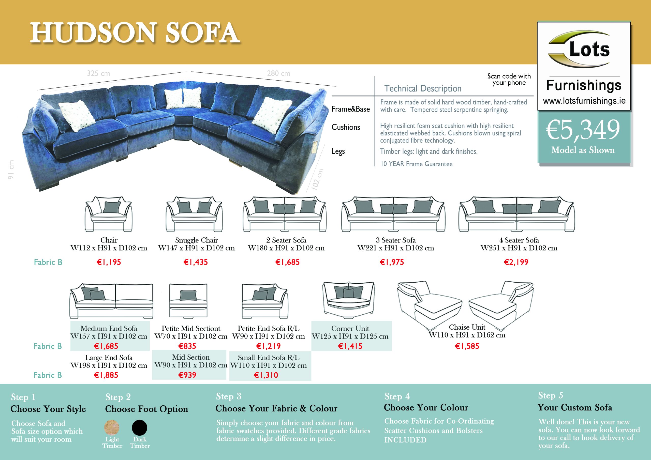 Hudson Sofa Specifications: